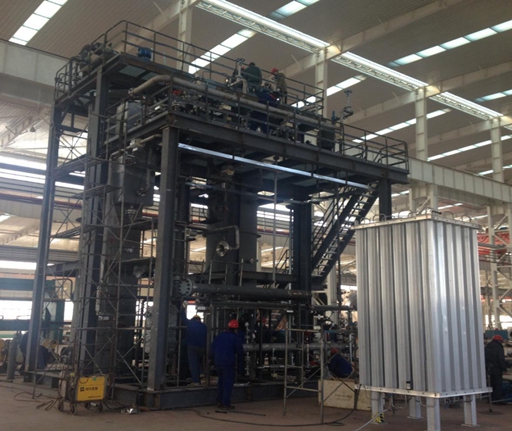 产品名称:天然气重烃脱除撬 项目名称: 河北霸州LNG液化工厂脱重烃项目 工作压力/温度:6.55 MPa/ 270/-50℃ 工作介质: 甲烷及重烃组分 设备尺寸(长×宽×高):7500×7000×10000mm 撬内主要设备:重烃吸附塔、低压重烃节能器、重烃分离器、重烃再生气换热器、再生气节能器 总重:75000kg 主要材质:Q235-A/S30408
